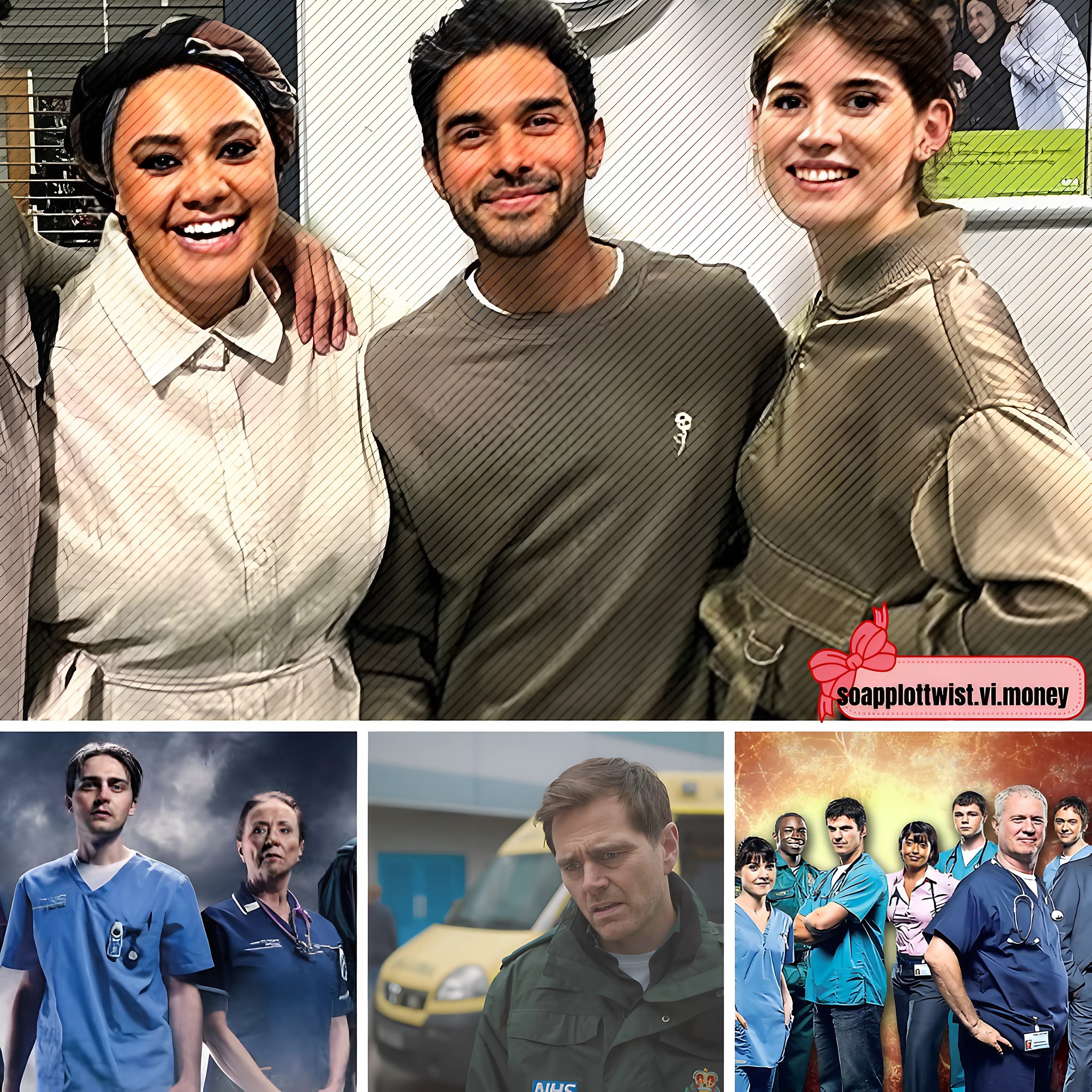 A press shot of Flynn, Rida and Russell in Casualty