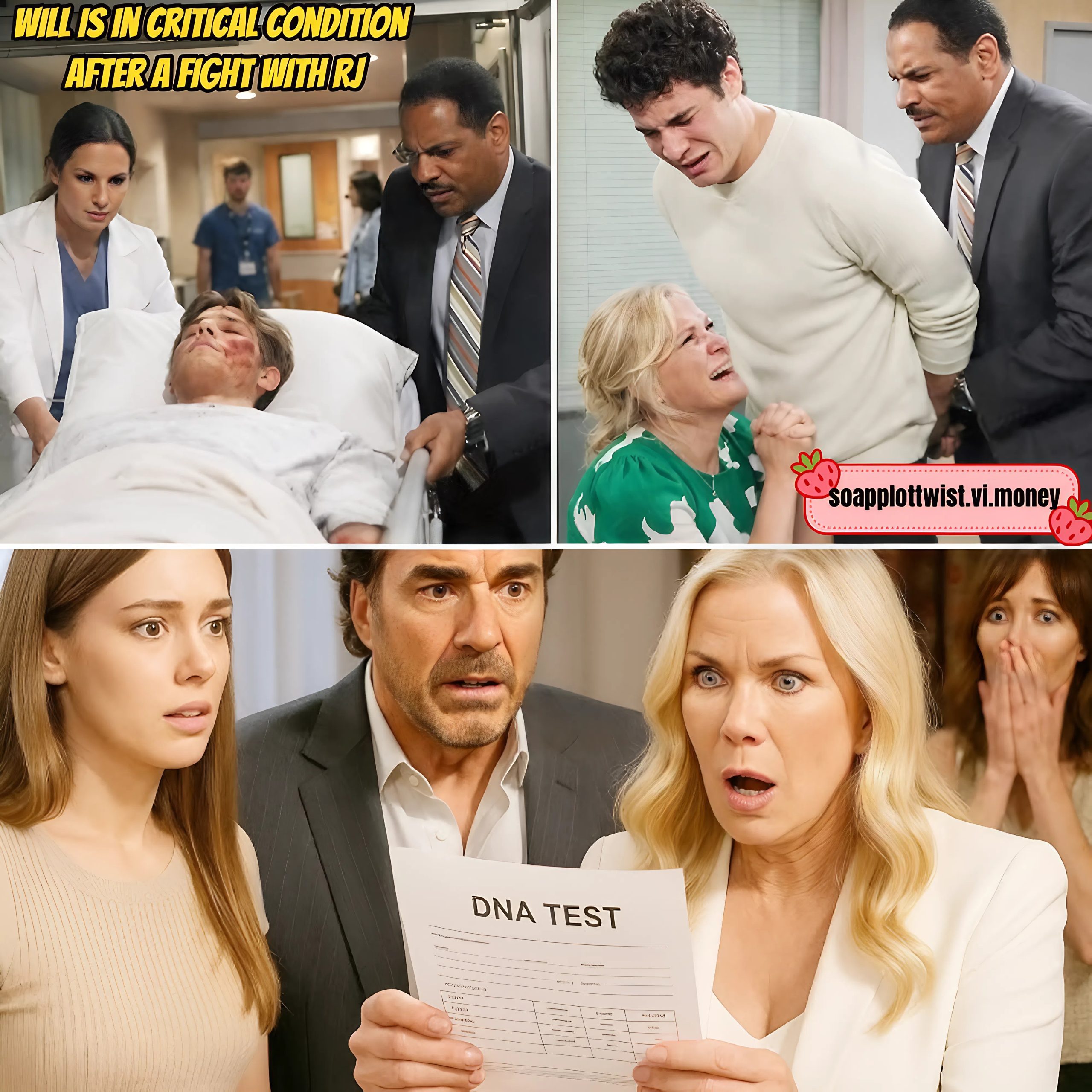 Will is in critical condition after a fight with RJ; Brooke pleads with Baker to save her son B&B