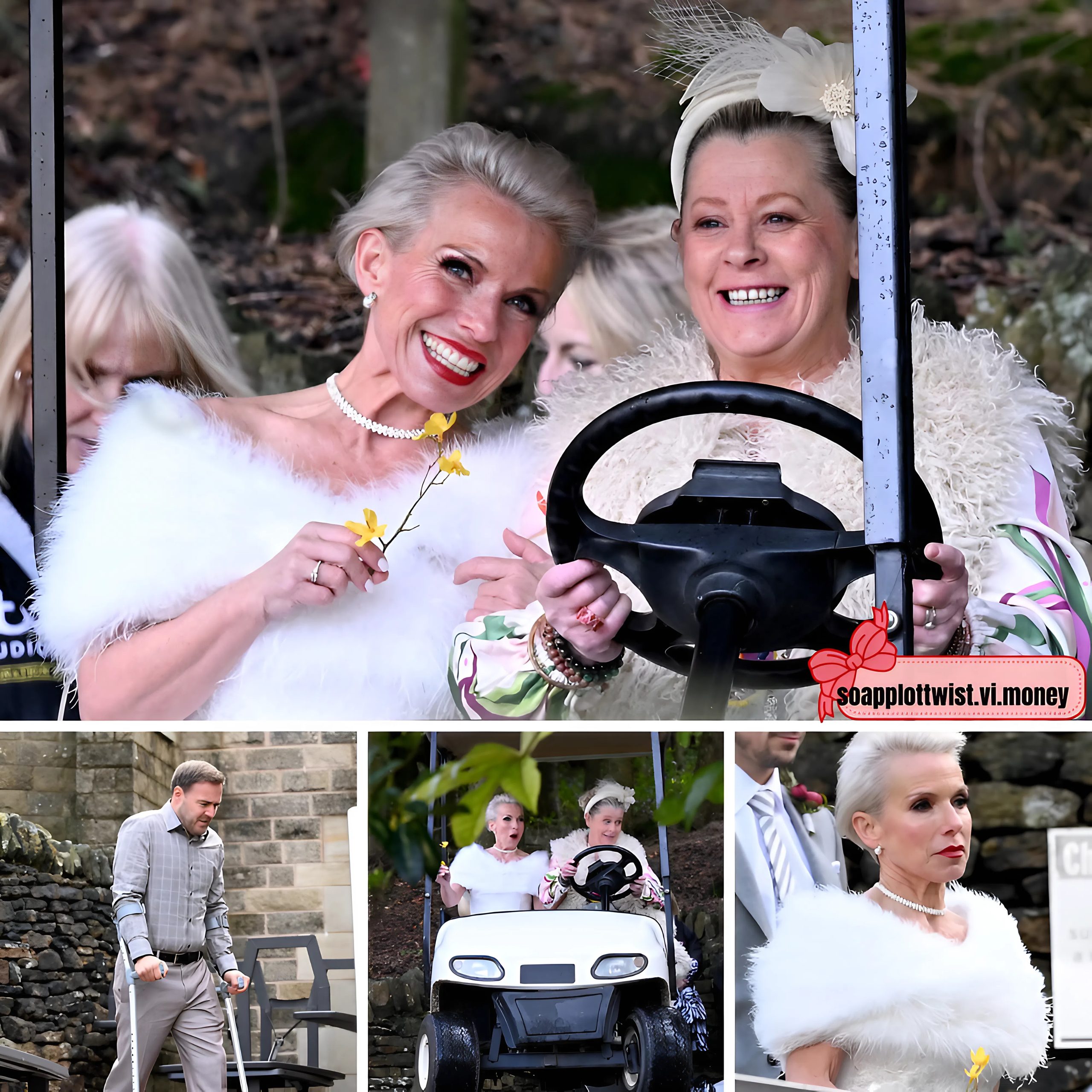 In various paparazzi photos from the set, we can see the characters enjoying the big day, with Debbie and Bernie looking particularly enthusiastic as they sit in the front of a golf buggy.