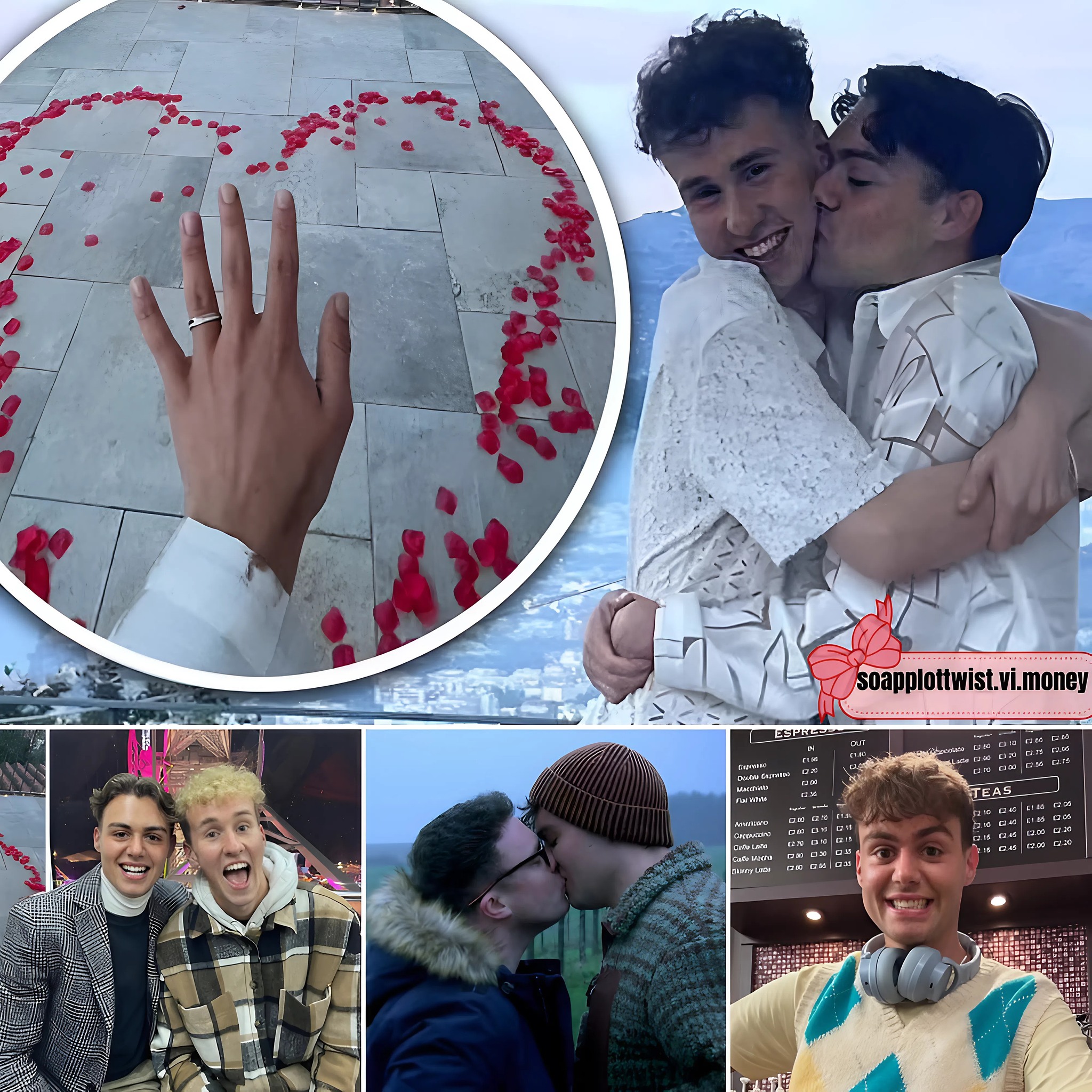 The pair got engaged against a breathtaking backdrop of the city and beach. One photo captured Bradley and Scott in an embrace within a heart made from rose petals.