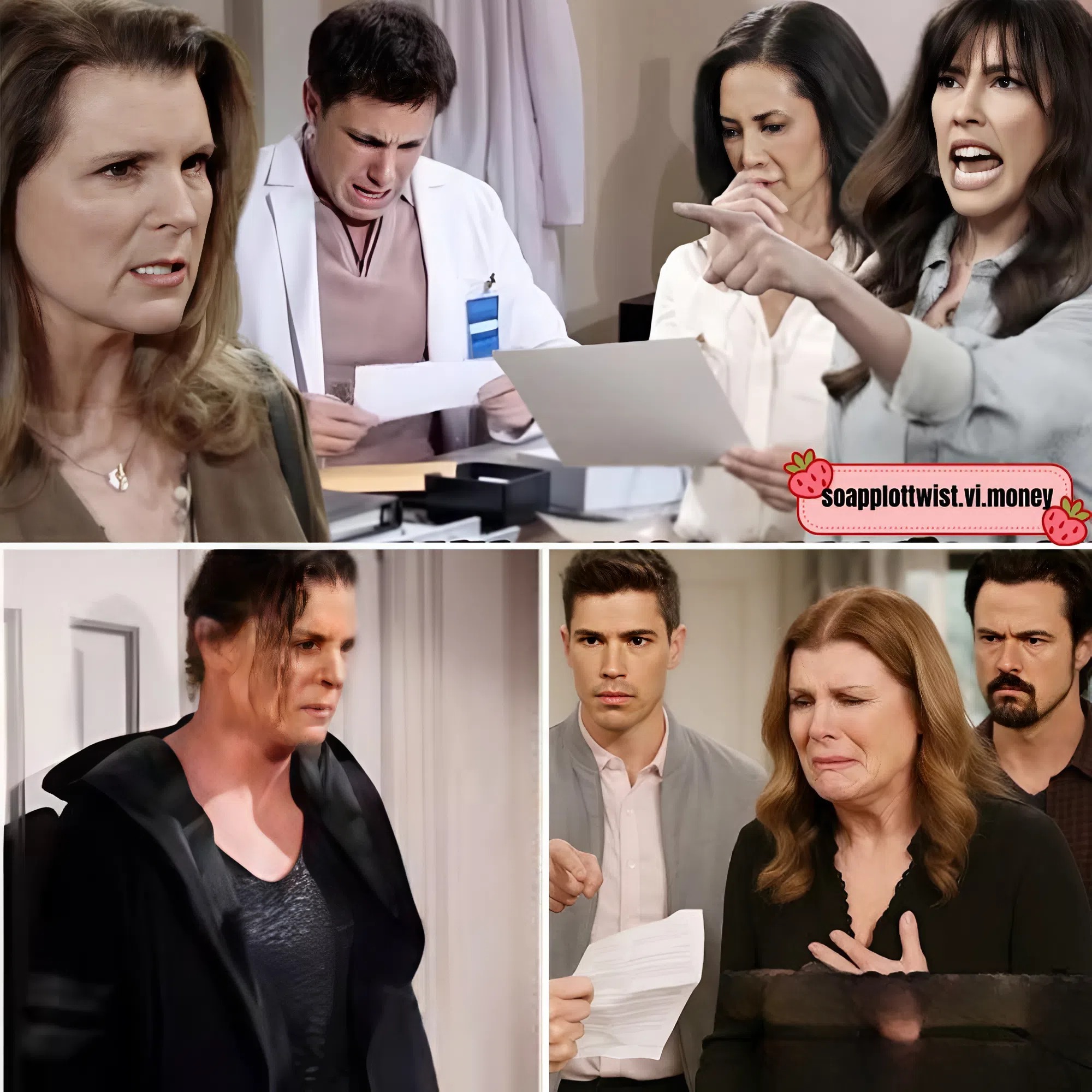 Her rage cools into something far more chilling: calculation. She pivots with terrifying speed, hinting that the DNA revelation is only the beginning. Sheila claims she knows secrets about Finn’s birth that go beyond biology—details about circumstances, deals, betrayals, and decisions that could devastate everyone in the room.