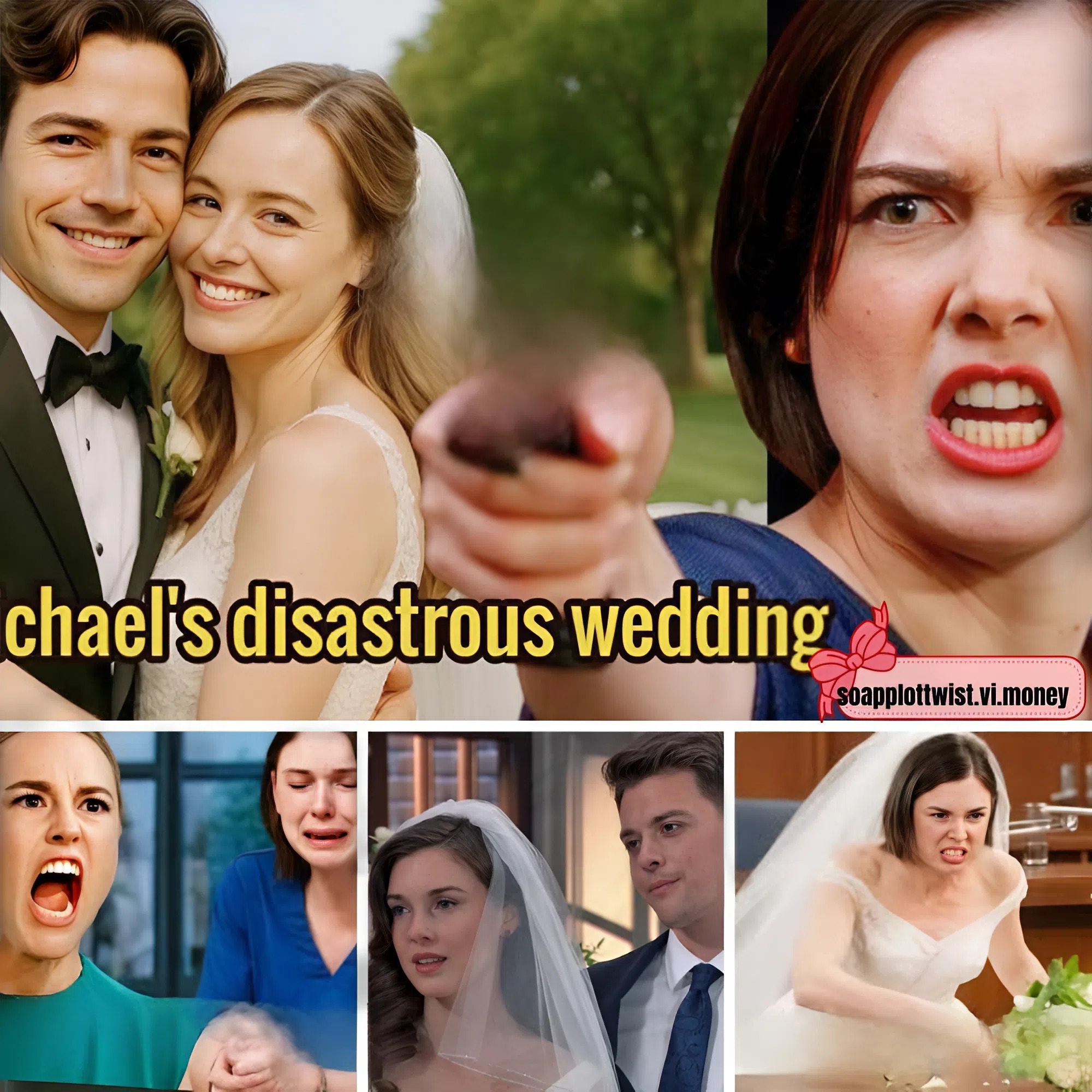 Michael, dressed in a tailored navy suit, looks every inch the confident groom — but there’s a flicker of unease in his eyes. Jacinda, radiant yet visibly tense, clutches her bouquet like a lifeline. Their smiles are practiced. Their chemistry, manufactured. But as the officiant begins to speak, a new tension fills the air — the kind that precedes disaster.
