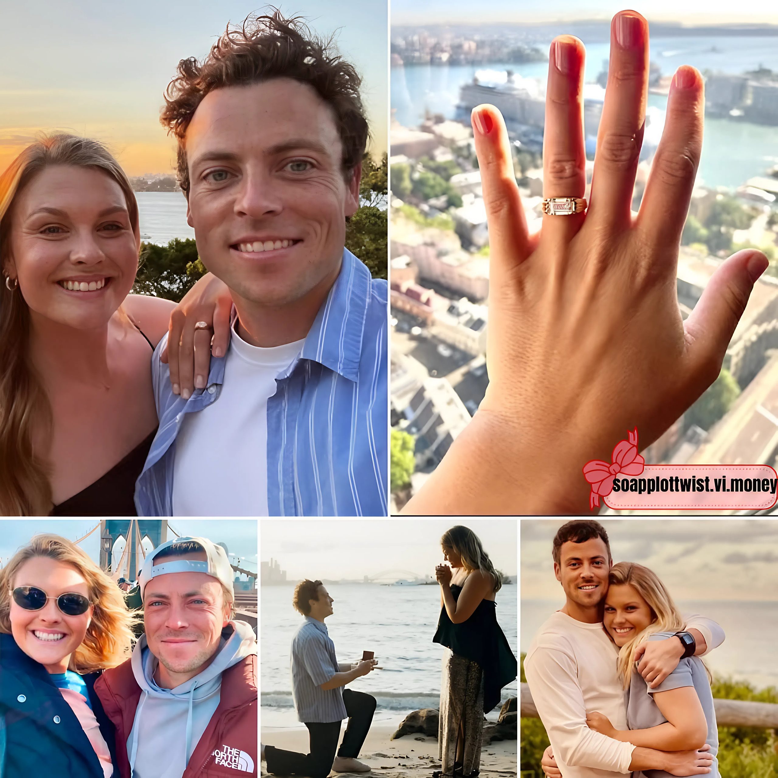 One precious photo showed the tender moment Patrick, 33, got down on one knee and proposed to Sophie at a scenic Sydney beach.