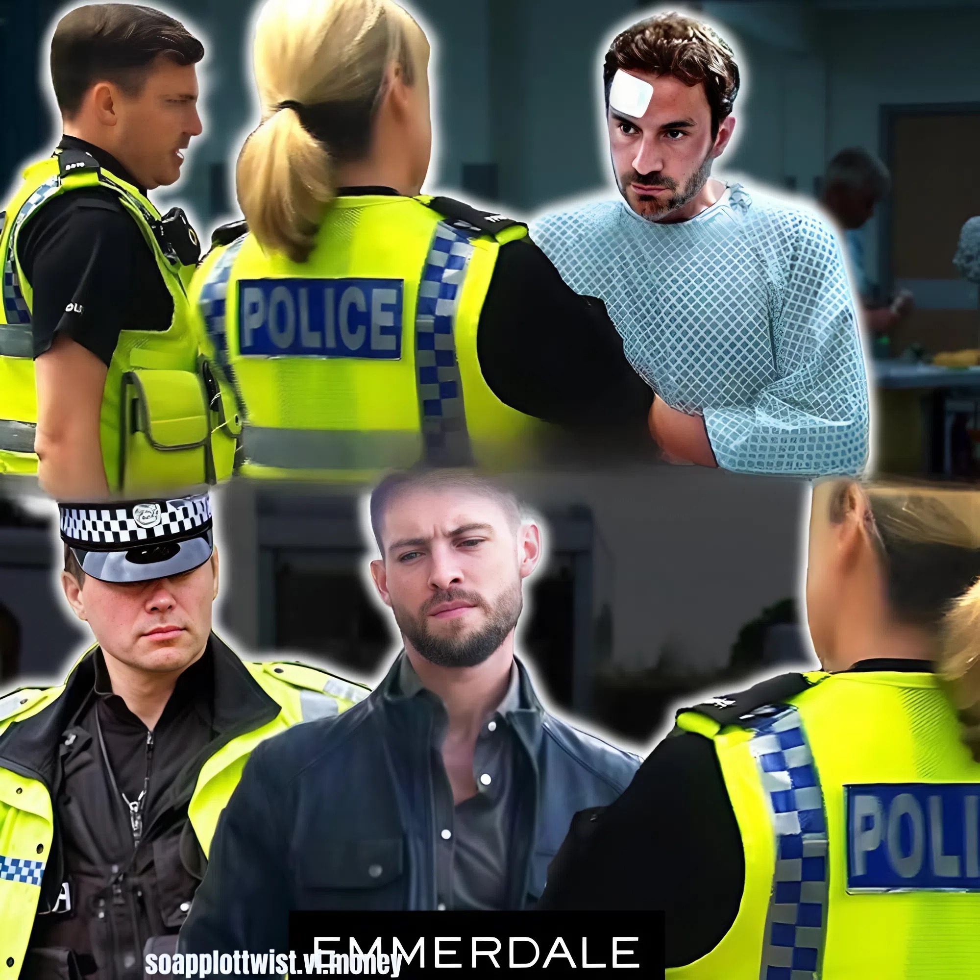 The aftermath is immediate and explosive. Jimmy is rushed to hospital, and Nicola King races to his side — only to be met with a sight that sends her into a fury: Joe, being interrogated by police at the hospital.