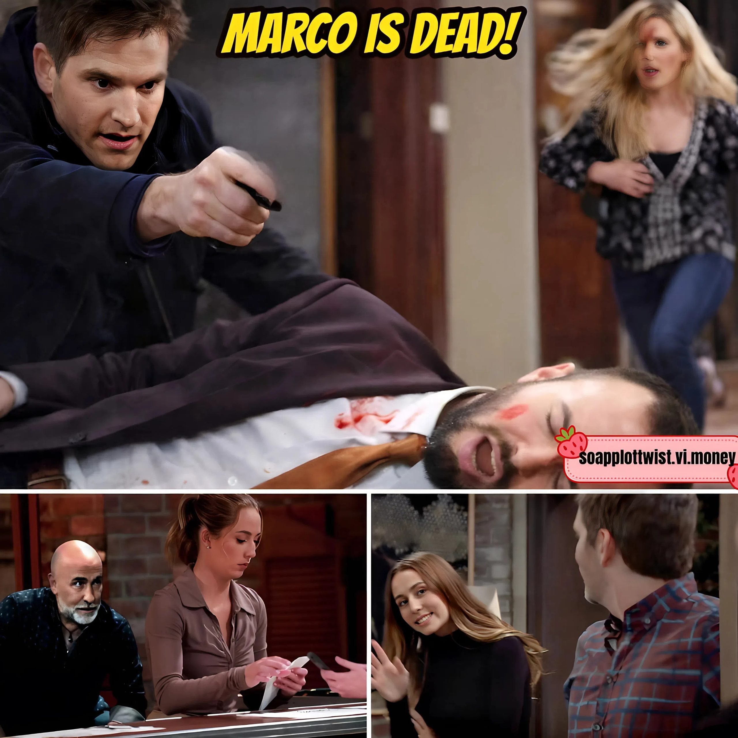 The moment itself is brutally sudden. Marco never sees it coming. One second, he is turning back toward a hidden corridor inside Wyndemere, distracted and confident, convinced he still controls every secret buried within the castle’s ancient walls. The next, a heavy object crashes into the back of his skull. The sound is sickeningly dull—final in a way Lucas doesn’t immediately comprehend. Marco collapses onto the cold stone floor, blood spreading beneath his head, and Lucas realizes in an instant that he has crossed a line that can never be uncrossed.