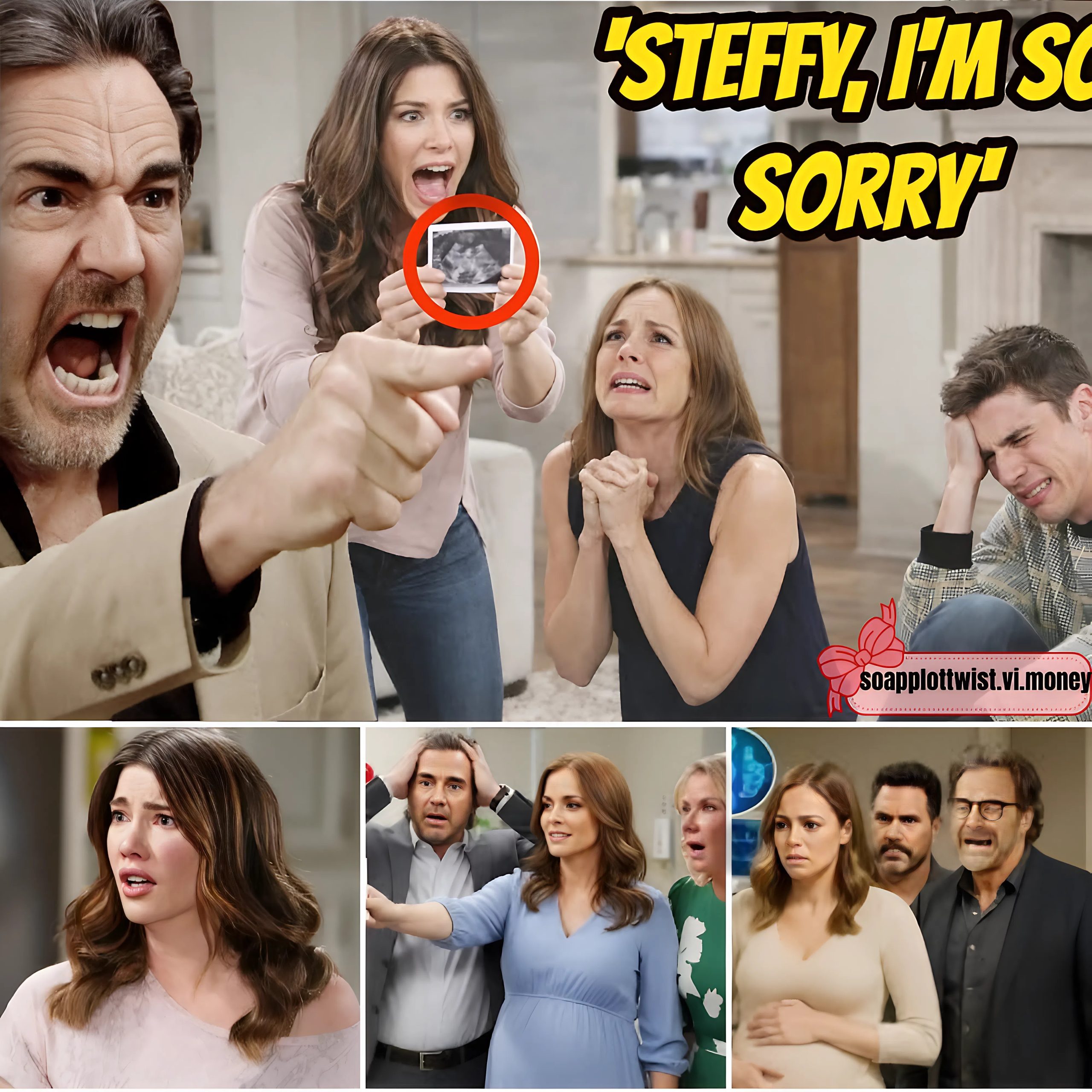 Then comes the final confirmation. By accident, as always. Taylor’s wallet spills open, and among its contents lies an ultrasound. Steffy knows the truth instantly. Dates. Measurements. There is no doubt. The child Taylor carries is Finn’s.