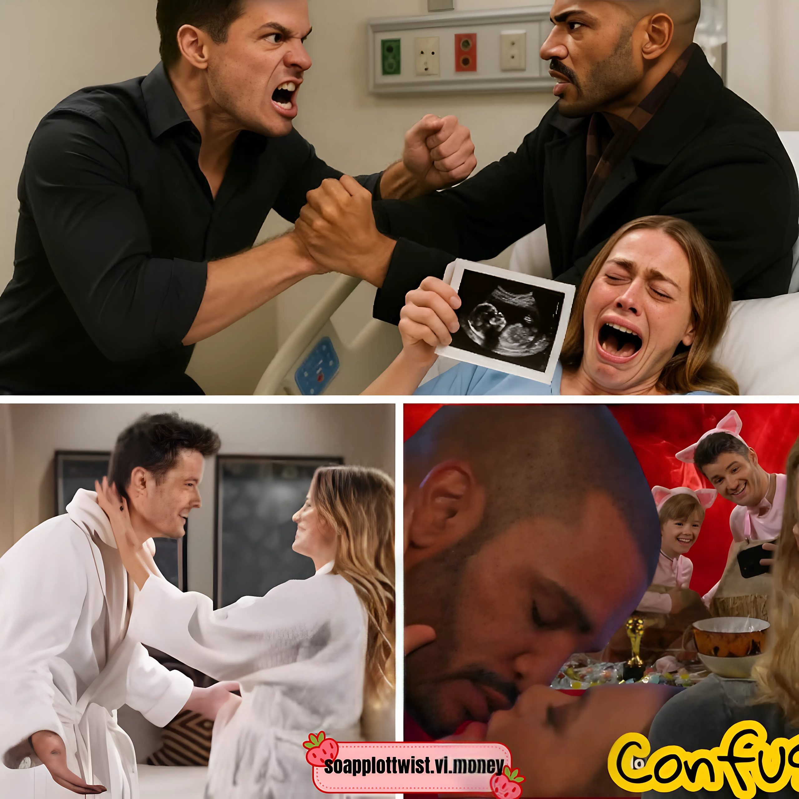 Kyle’s face softens—his love instinctively rising above the shock—while Holden’s eyes darken with doubt. Questions hang in the air like smoke: Whose baby is it? When did this happen? Why didn’t she say something sooner?