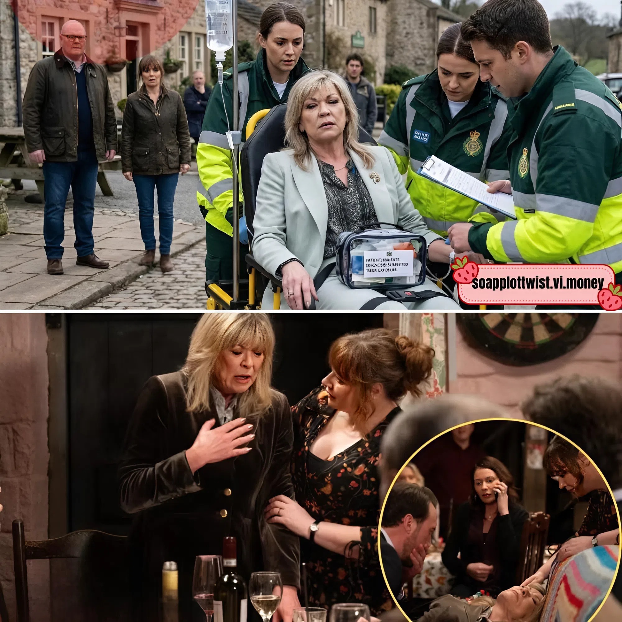 Emmerdale reveals a shocking move from one of Kim Tate’s many enemies next week, after it appears that she’s been poisoned during a truce dinner with the Dingles.