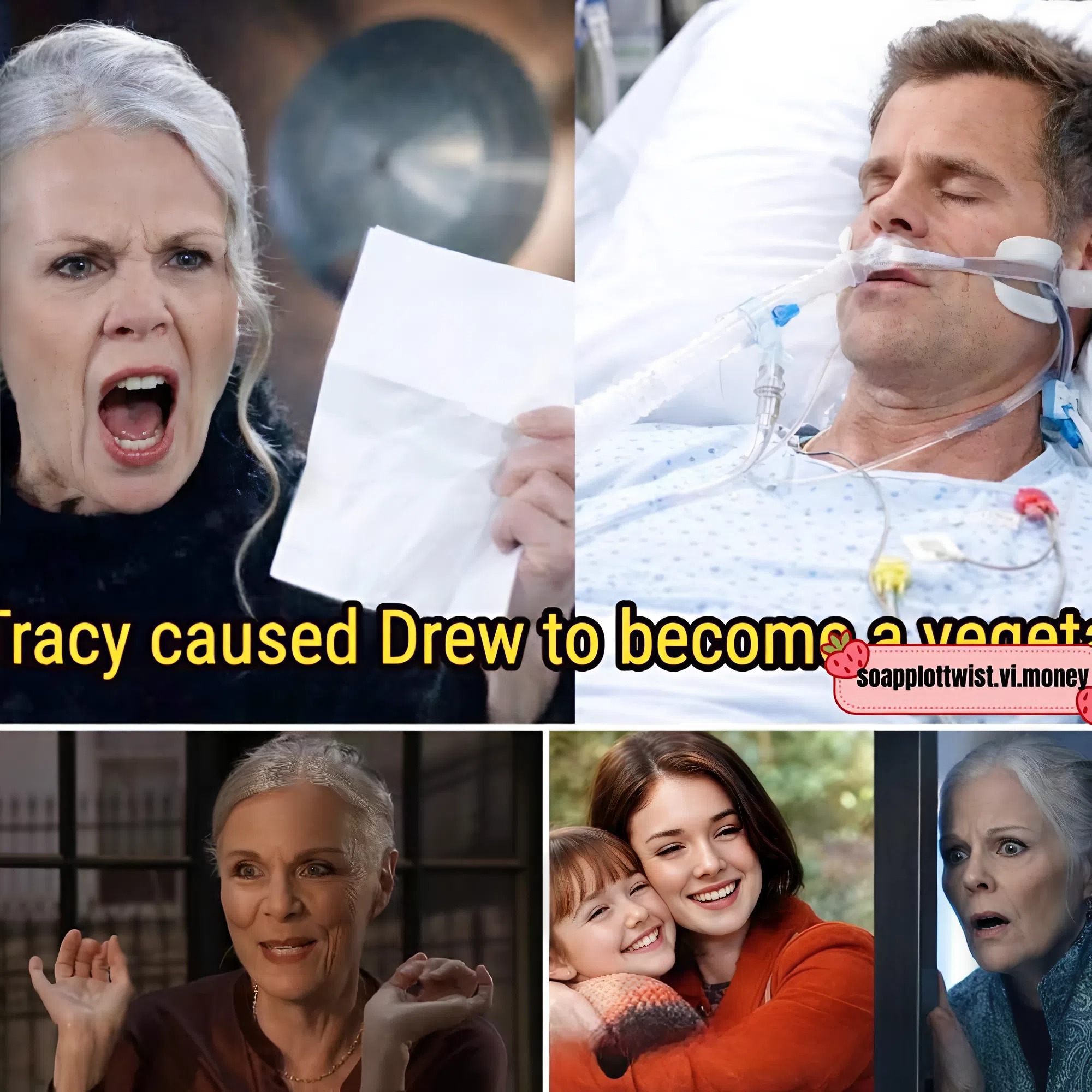 What initially appeared to be a tragic medical crisis is rapidly evolving into something far more unsettling. Drew’s silence is no longer just the result of physical collapse—it has become a strategic vacuum. And Tracy, long underestimated as merely sharp-tongued and cynical, steps decisively into that vacuum with terrifying precision.