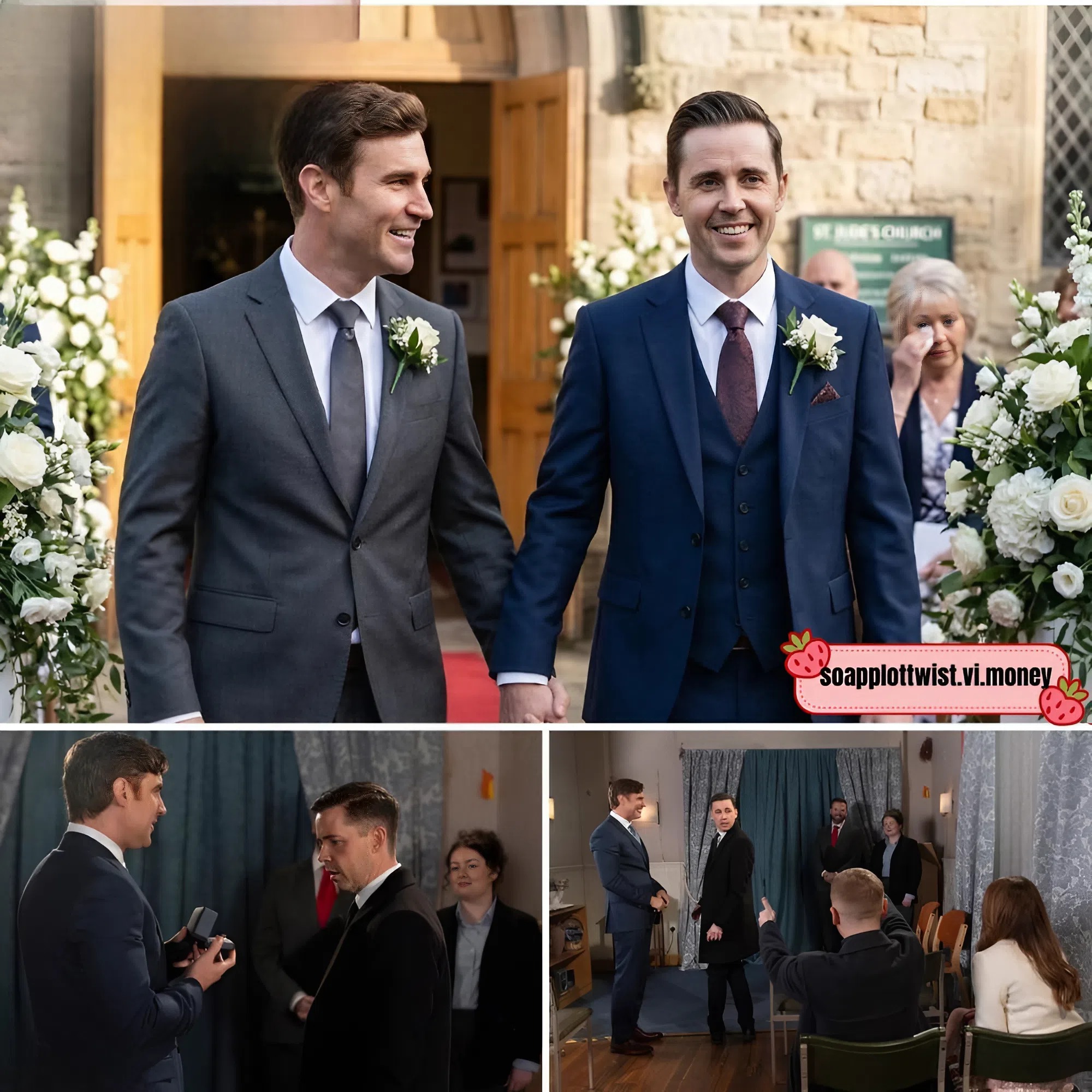 Dressed to the nines, Theo blindfolds Todd and leads him to the register office, where Gary and Maria are waiting. Holding out two wedding rings, he reveals they never called off their wedding — it can still go ahead. How will Todd react to this stunning twist?